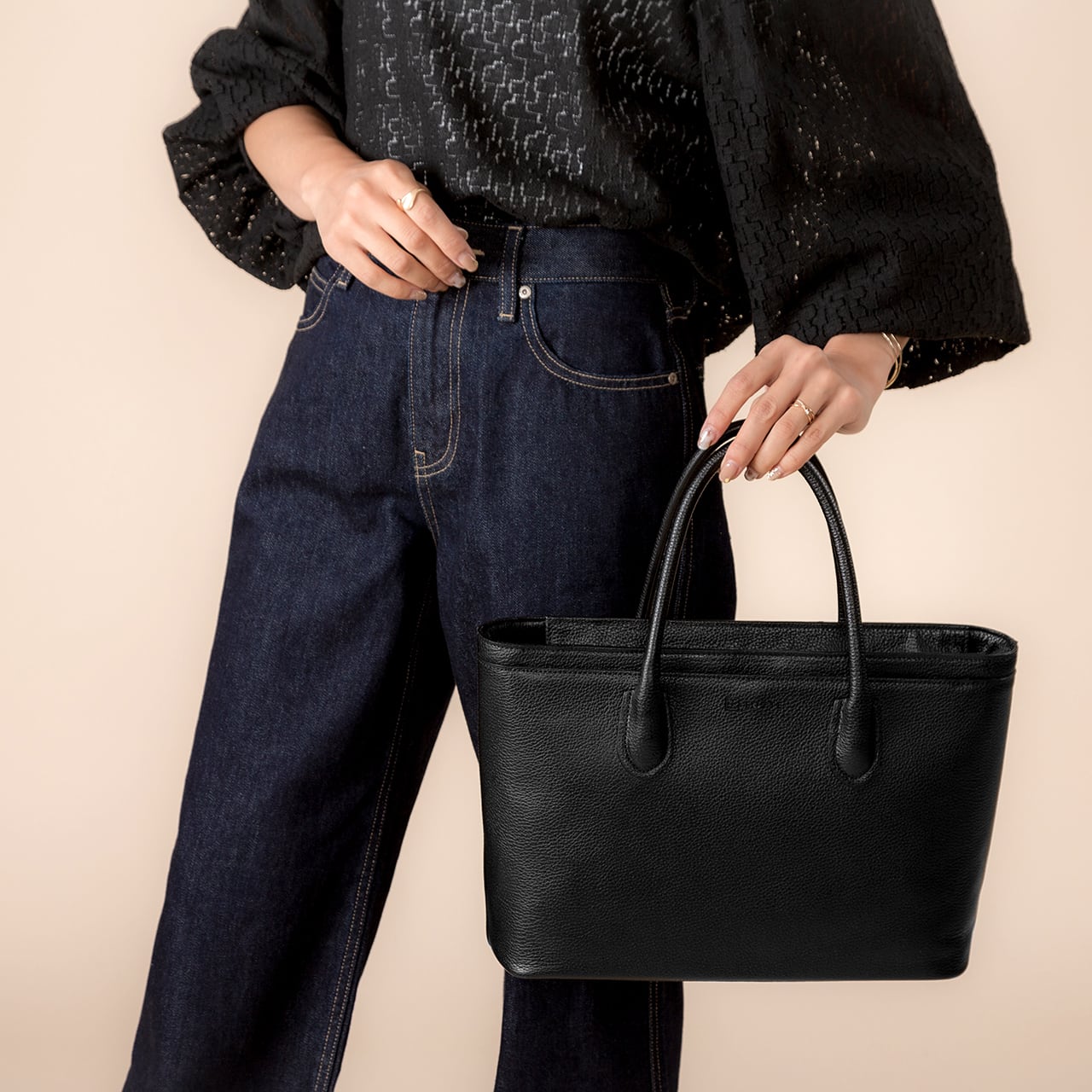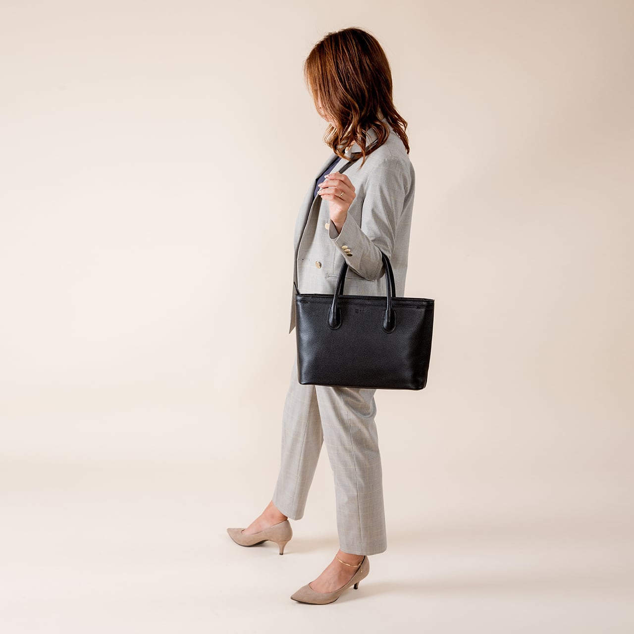 フォーマルのエレガントさと十分な機能を持ち合わせるセミフォーマルトート。